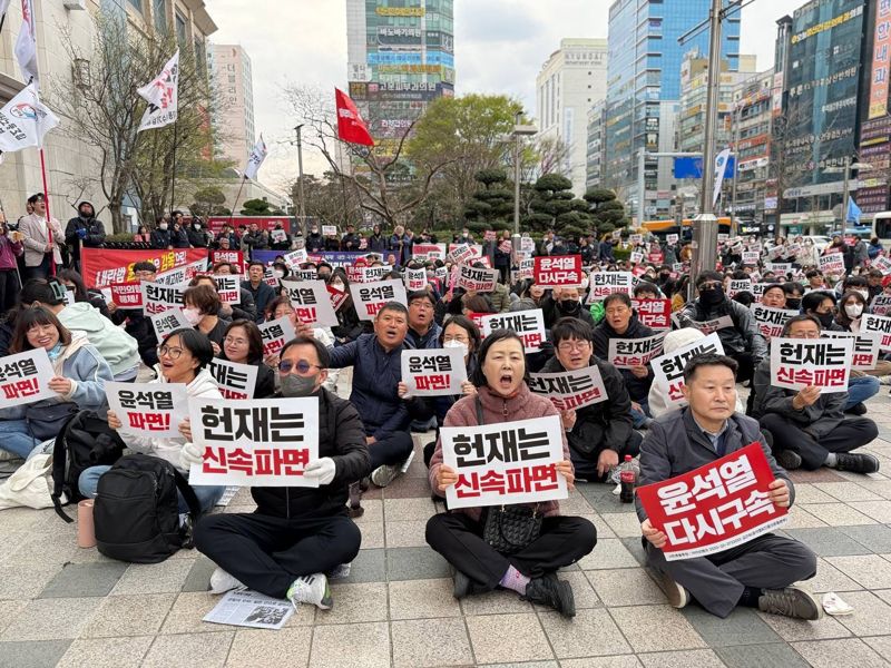 오후 4시 시작된 이날 집회에서 참가자들은 헌법재판소의 윤 대통령 즉각 파면을 촉구했다.