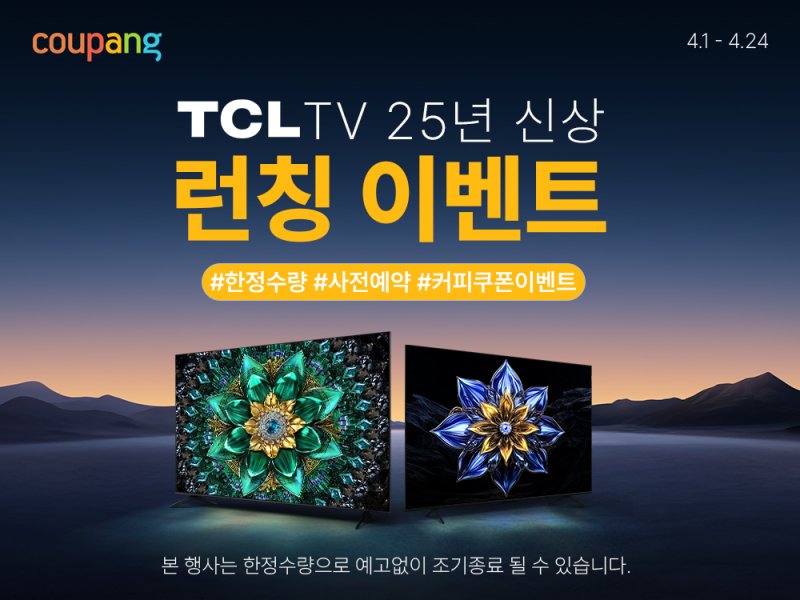 쿠팡 관계자는 "TCL의 2025년 TV 라인업은 혁신적인 기술과 합리적인 가격으로 소비자들에게 큰 만족을 줄 것"이라며 "풍성한 사전판매 혜택도 놓치지 않길 바란다"고 밝혔다.