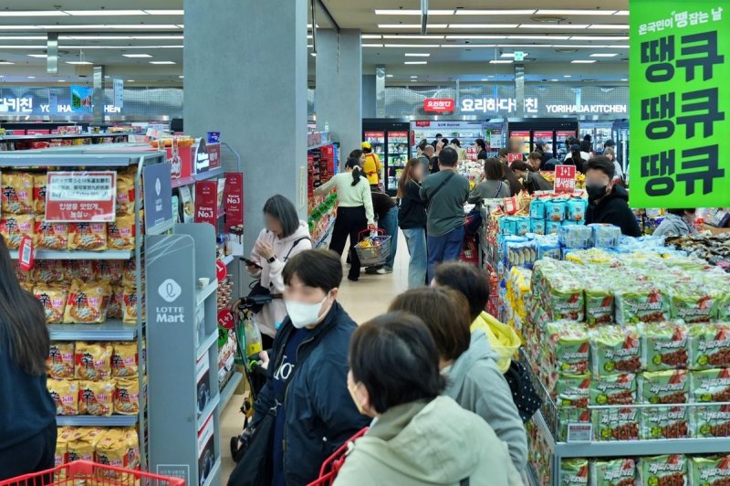 (서울=연합뉴스) 성혜미 기자 = 롯데마트는 창립 27주년을 맞아 지난달 27일부터 진행 중인 식료품 할인행사 '땡큐절'이 큰 인기를 끌고 있다고 1일 밝혔다.