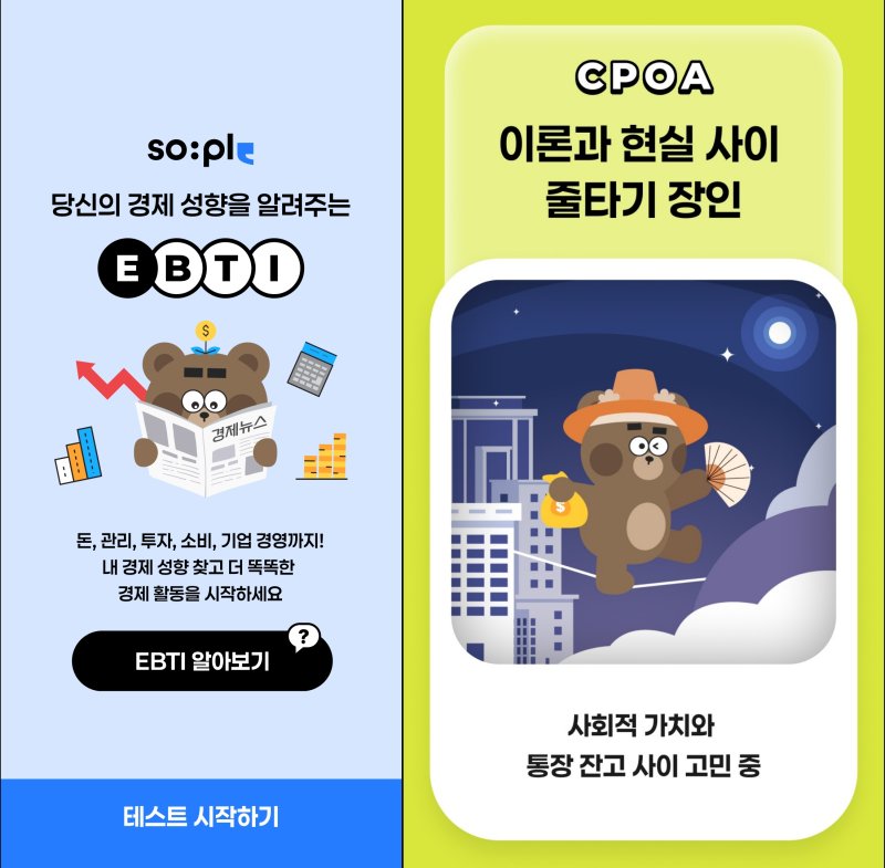 경제 MBTI인 'EBTI'는 MBTI 테스트의 경제 버전으로 투자, 소비, 기업 경영 등 다양한 관점에서 국민들의 경제성향을 진단해준다.