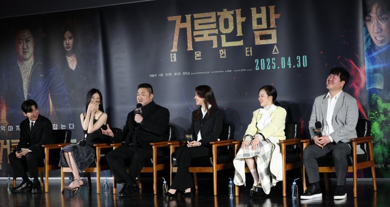 2일 서울 광진구 자양동 롯데시네마 건대입구에서는 영화 '거룩한 밤: 데몬 헌터스'(감독 임대희/이하 '거룩한 밤') 제작보고회가 진행됐다. 이날 자리에는 마동석, 서현, 이다윗, 경수진, 정지소, 임대희 감독이 참석해 이야기를 나눴다.