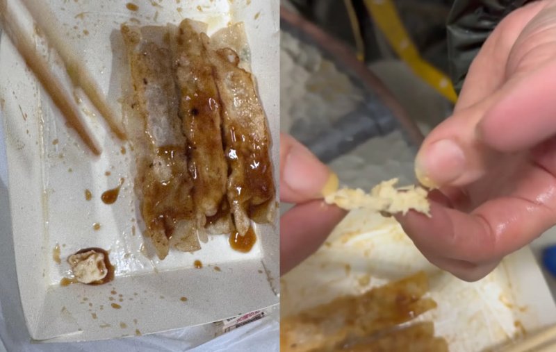 그는 소셜미디어에 "젓가락으로 꺼내보니 이물질은 끈적거리며 씹힌 자국까지 있어 껌이라고 생각했다"고 전했다.