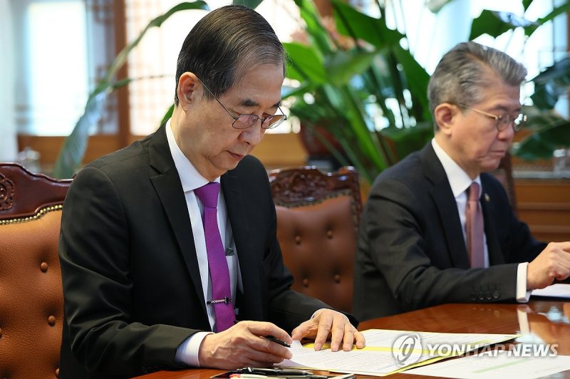 한 권한대행은 미국이 발표한 상호관세의 주요 내용을 보고 받고 "글로벌 관세전쟁이 현실로 다가온 매우 엄중한 상황"이라며 "통상위기 극복을 위해 정부가 가진 모든 역량을 쏟아부어야 할 것"이라고 강조했다.