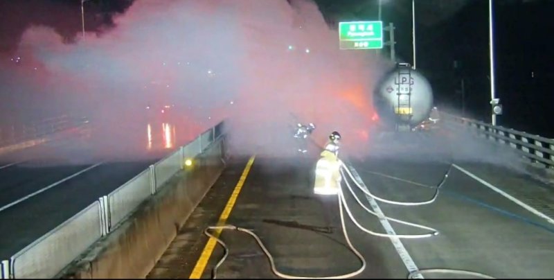 (평택=뉴스1) 김기현 이상휼 기자 = 5일 오후 10시 12분쯤 경기 평택시 포승읍 원정리 남양대교 편도 2차선 도로를 달리던 탱크로리에서 화재가 발생했다.