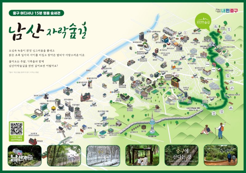 예컨대 중구 서쪽(소공·회현·명·중림동)은 덕수궁, 명동성당, 숭례문 등 역사 명소를 따라 걷다 보면 남산자락숲길과 자연스럽게 연결된다. '남산 인생샷 로드', '근현대사 탐방 코스', '외국인 하이킹 코스', '중림 산티아고' 등 다채로운 테마 코스도 마련됐다.