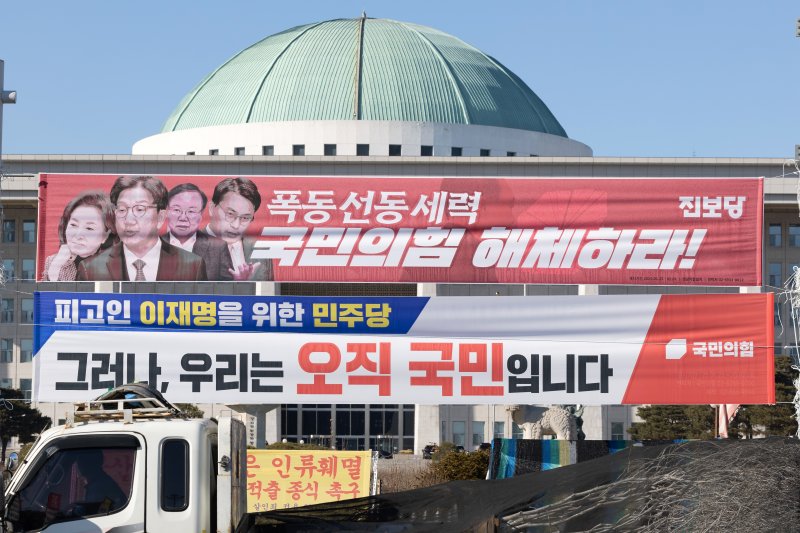 앞서 윤석열 전 대통령 탄핵심판이 진행되는 기간에는 서울 거리 중 시민들의 시선이 집중되는 횡단보도 곳곳에선 두 정당이 서로를 비방하는 내용의 현수막이 마주보고 걸려있는 모습이 곳곳에서 목격됐다.