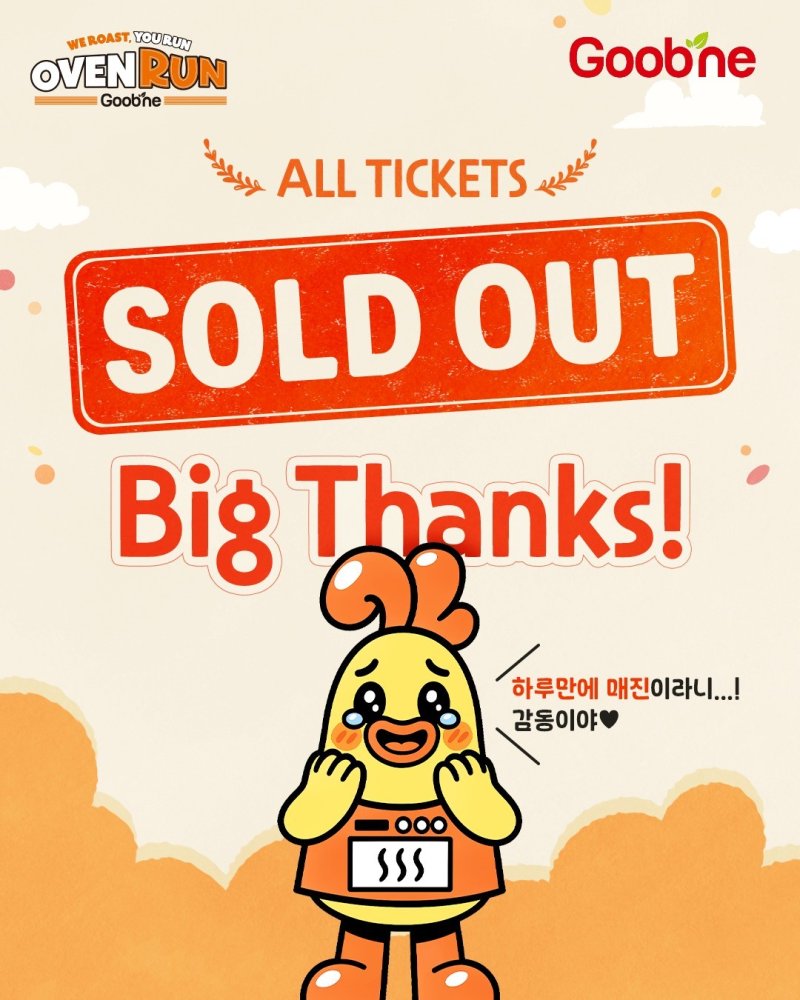 (서울=뉴스1) 이강 기자 = 지앤푸드는 자사 브랜드 굽네치킨의 업계 최초 치킨 러닝 대회 '굽네 오븐런'의 참가 티켓이 전량 매진됐다고 10일 밝혔다.