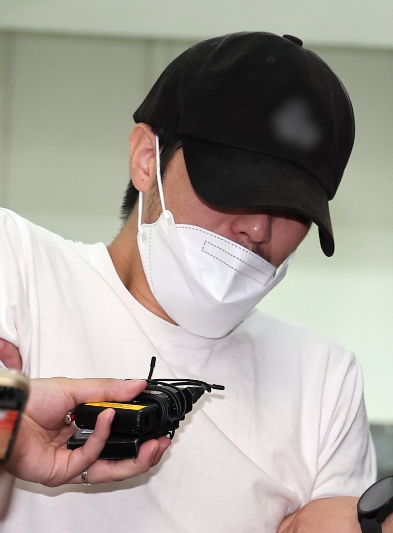 자신이 운영하는 태권도장에서 5살 남자아이를 심정지 상태로 빠뜨린 관장이 작년 7월19일 경기 의정부경찰서에서 검찰로 송치되고 있다. 2024.7.19/뉴스1 ⓒ News1 김성진 기자