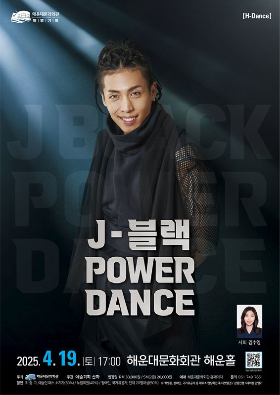 [부산=뉴시스]김민지 기자 = 부산 해운대문화회관은 오는 19일 오후 5시 해운홀에서 힙합 댄서 제이블랙의 '파워댄스' 공연을 선보인다고 11일 밝혔다.
