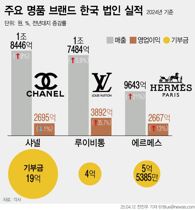 [서울=뉴시스]이현주 기자 = '에루샤(에르메스·루이비통·샤넬)'로 불리는 해외 명품 브랜드 빅3의 지난해 국내 매출이 합산 약 4조6000억여원에 육박할 정도로 나란히 성장했다.
