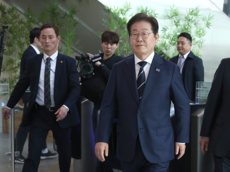 제21대 대통령선거에 출마를 선언한 이재명 더불어민주당 전 대표가 11일 오전 서울 여의도 국회 소통관에서 비전 및 캠프 인선을 발표를 마친 후 기자회견장을 나서고 있다. (공동취재) 2025.4.11/뉴스1 ⓒ News1 이재명 기자