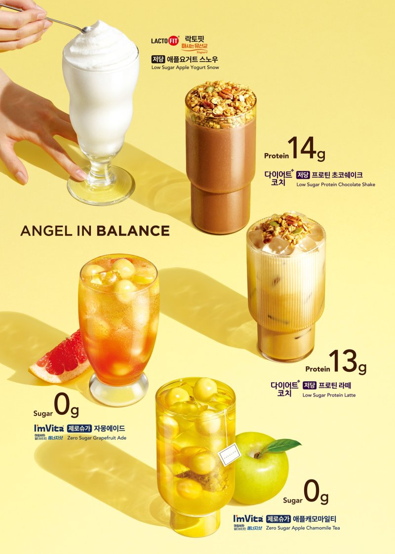 다이어트코치 원료를 활용해 가볍게 한 잔 즐길 수 있는 '저당 프로틴 초코쉐이크'와 '저당 프로틴라떼(HOT/ICE)'도 출시한다.
