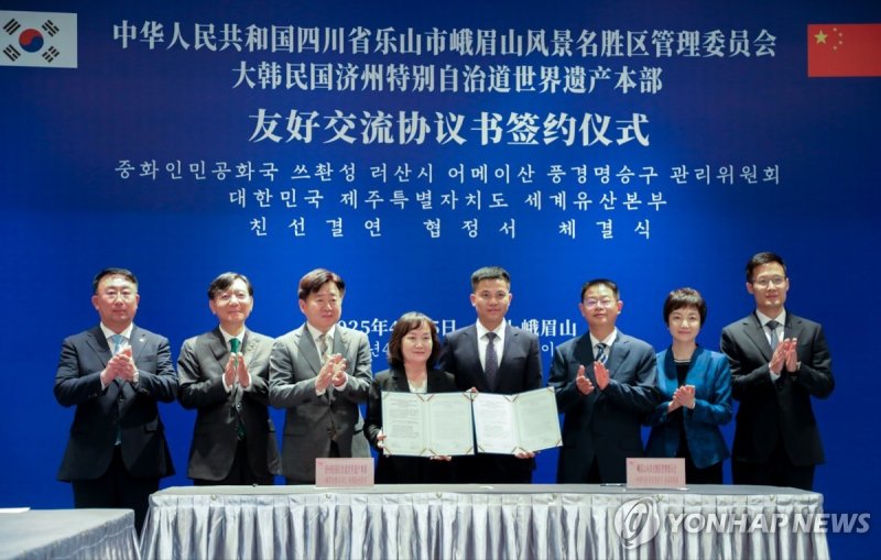 (제주=연합뉴스) 고성식 기자 = 제주도와 중국 쓰촨성 러산시는 15일 러산시에서 세계자연유산 보호와 관광 교류 활성화를 위한 친선 결연을 체결했다고 제주도가 밝혔다.