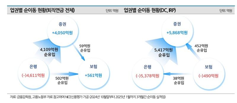 이에 실물이전 서비스가 도입된 2024년 10월 말부터 2025년 1월 말까지 총 2조4000억원의 적립금이 이전됐고, 이 중 상당부분이 증권업으로 유입됐다.
