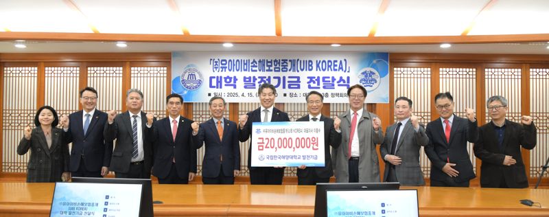 [파이낸셜뉴스] ㈜유아이비손해보험중개(UIB KOREA)가 국립한국해양대학교에 채용 연계형 인턴십 활성화와 보험분야 학술교류를 통한 지역인재 고용확대 등에 써달라며 대학발전기금 2000만원을 기탁했다.