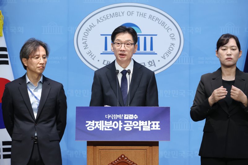 김 후보는 이날 오전 국회에서 경제분약 정책발표 기자회견을 열고 "AI 전환과 기후경제 전환은 세계의 각축이 벌어지는 주요 무대"라며 이같이 밝혔다.