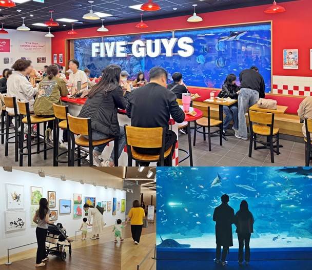 16일 갤러리아백화점에 따르면 지난달 14일 광교점 내 오픈한 파이브가이즈 광교는 하루 평균 1500명 이상이 방문하며 인기를 끌고 있다. 아쿠아리움이 적용된 매장은 가족 단위 방문객들이 줄을 잇고 있다.