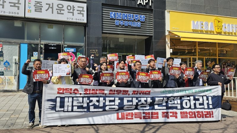 광주 186개 시민사회단체로 이뤄진 광주운동본부(광주비상행동)는 이날 광주 서구 더불어민주당 광주시당 앞에서 기자회견을 열고 "제1당 민주당은 하루빨리 이들을 탄핵해 국정 운영과 내란 수사에서 격리해야 한다"며 이같이 주장했다.