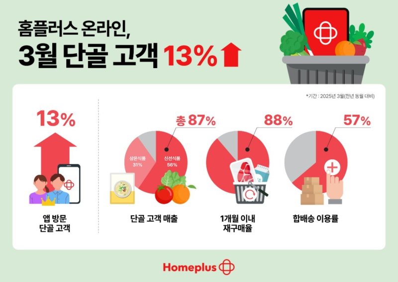 홈플러스 온라인은 매장의 신선한 상품을 골라 고객이 선택한 시간대에 배송하는 구조로, 지난 3월 홈플러스 온라인 단골 고객의 57%가 '합배송' 서비스를 이용했다. 이는 일반 고객 대비 20%p 높은 수치다.