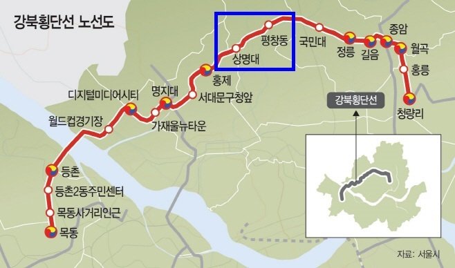 강북횡단선은 청량리역에서 목동역까지 서울 7개 자치구를 연결하는 총연장 25.72㎞의 경전철 노선이다. 종로구 구간에는 평창동·부암동을 포함해 총 19개 정거장이 포함됐다.