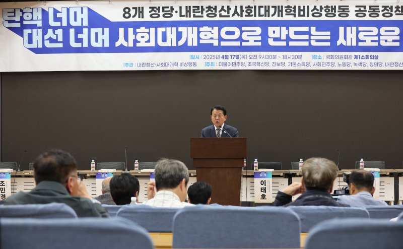 민주당과 혁신당·진보당·기본소득당·사회민주당·노동당·녹색당·정의당은 17일 오전 국회 의원회관에서 내란청산·사회대개혁 비상행동과 함께 '공동 정책 토론회'를 진행했다.