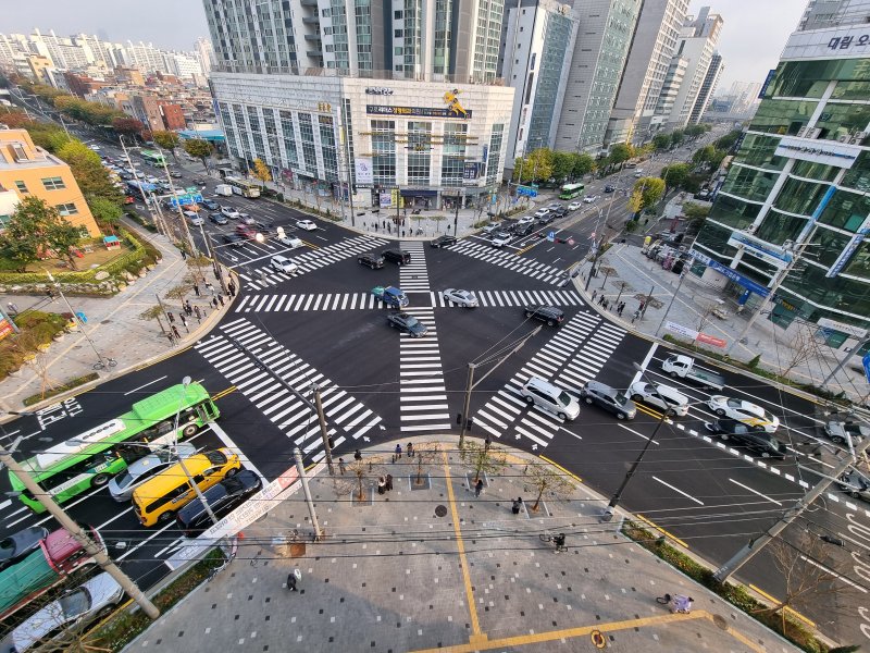 시는 지난해 유동인구가 많은 도심 상업지구, 대중교통 이용이 집중되는 지역 등을 중심으로 보행 수요·이동 동선을 분석해 니은(ㄴ)·디귿(ㄷ) 자 형태의 횡단보도를 미음(ㅁ) 또는 엑스(X) 자 모양으로 변경하는 등 총 11개소 횡단보도를 개선 및 신설했다.