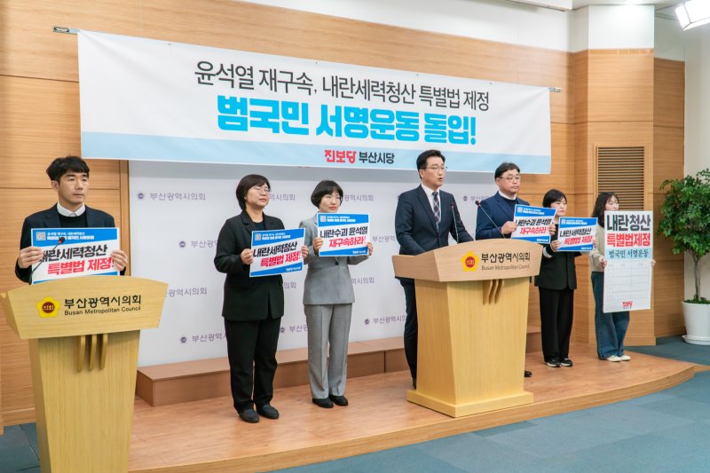 진보당 부산시당은 17일 오전 부산시의회에서 기자회견을 열고 "윤석열 재구속과 내란세력청산특별법 제정이 헌정질서 회복의 첫걸음"이라고 강조했다.