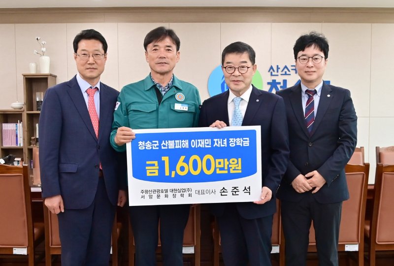 윤경희 군수는 "주왕산온천관광호텔이 보여준 사회적 책임과 나눔 실천에 깊이 감사드린다"며 "이번 장학금은 군민들에게 큰 위로와 격려가 될 것"이라고 밝혔다.