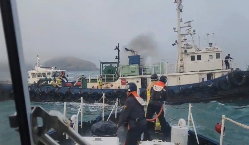 또 해경 3001함 등 경비함정 4척과 연안구조정, 중앙해양특수구조단, 부산항공대 헬기 등을 투입해 화재를 진압하고 있다.