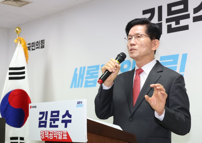 [서울=뉴시스] 이재우 기자 = 김문수 국민의힘 대선 경선 후보는 18일 대통령실에 기업 민원 담당 수석 신설 등을 공약했다.