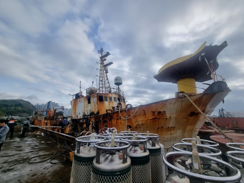 경찰과 소방은 이날 선박 해체를 위해 산소 절단 작업을 하던 중 불티가 우레탄 자재로 튀면서 화재가 발생했다는 관계자 진술을 토대로 정확한 화재 원인과 재산피해를 조사 중이다.