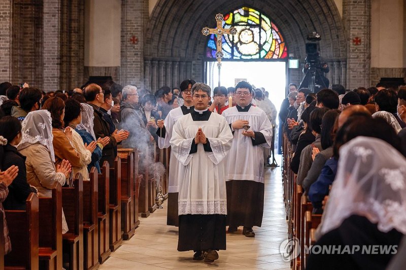 (서울=연합뉴스) 이세원 기자 = 부활절인 20일 천주교와 개신교는 전국 성당과 교회에서 예수의 부활을 축하하는 미사와 예배를 올리고 최근 혼란과 어려움을 겪은 한국 사회가 희망과 안정을 되찾을 수 있기를 기원한다.