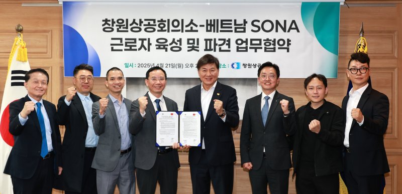 협약 체결식에는 창원상의 최재호 회장과 SONA 응우엔 덕 남 이사장, 푸옹 트롱 롱 인력공급 매니저, 응우엔 덕 투이 한국지사장, 심양식 소나 한국대표 등이 참석했다.