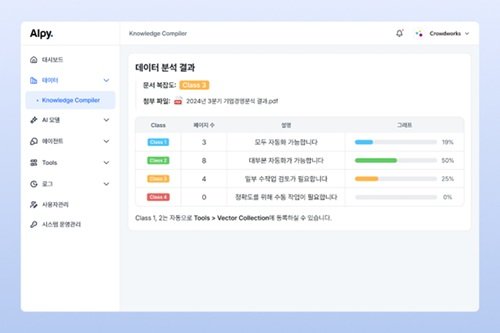 최근 AI 기술 도입 확산으로 기업 내 비정형 데이터 활용과 자산화의 중요성이 높아지면서, AI 기반 문서 자동화 도구에 대한 수요도 크게 증가하고 있다. 크라우드웍스는 '알피 날리지 컴파일러'를 활용해 국내외 다양한 산업군의 데이터 전처리 수요에 적극 대응하고, 기업용 AI 시장에서 선도적 입지를 강화할 계획이다.