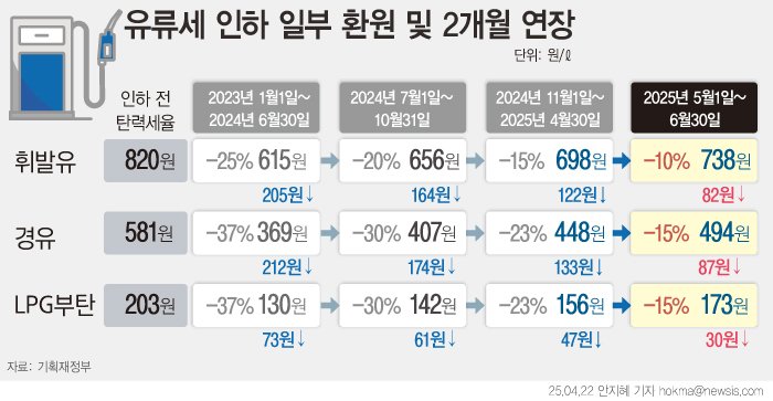 인하율 휘발유 10%·경유 및 LPG 부탄 15%로 환원