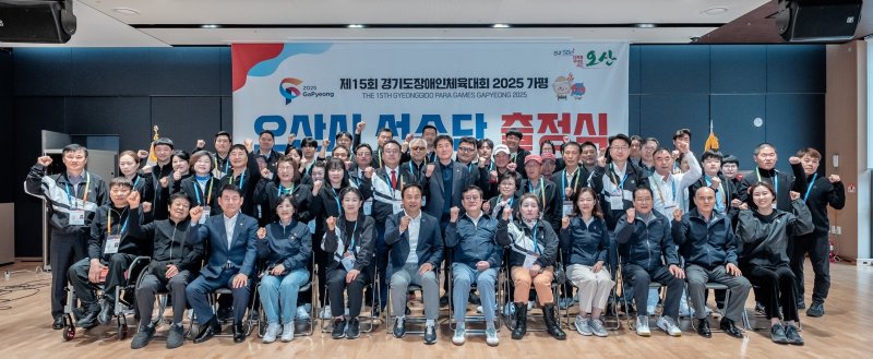 [오산=뉴시스] 정숭환 기자 = 경기 오산시장애인체육회는 관내 오색문화체육센터에서 '제15회 경기도장애인체육대회' 선수단 출정식을 열었다고 22일 밝혔다.