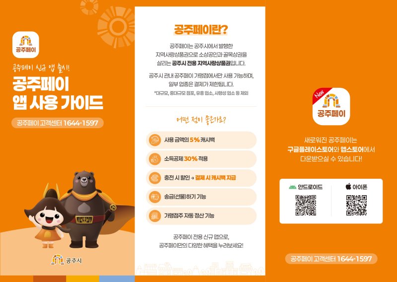 개편된 공주페이는 선할인 방식에서 결제금액의 5%를 캐시백으로 돌려받는 방식으로 변경되었으며 이는 행정안전부의 ‘2024년 지역사랑상품권 발행지원사업 종합 지침’에 따른 것으로 소비유발 효과 및 정책 활용도를 높이기 위한 조치다.