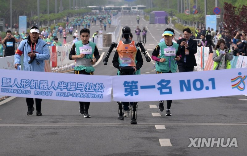 중국이 휴머노이드 로봇 분야에서 미국을 추월했다는 평가가 나오는 가운데 세계 최초로 휴머노이드 로봇들이 인간과 대결하는 하프마라톤대회가 지난 19일 중국 베이징에서 열렸다.