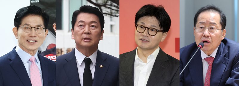 22일 국민의힘 대선 후보 선출을 위한 2차 예비경선(컷오프)을 통과한 김문수·안철수·한동훈·홍준표 후보(가나다순)는 다음 컷오프까지 토론 5회와 당심 투표·민심 조사를 거친다.