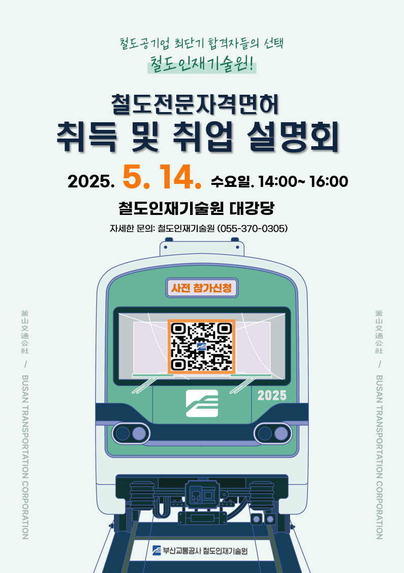 이번 설명회에는 철도 공기업 취업을 목표로 하는 이들을 위해 공사의 교육기관인 철도인재기술원 교수진이 직접 강사로 나서 철도 전문 자격면허 제도 소개, 공공기관 채용 동향 분석, 자격 취득 후 취업 사례, 교육시설 견학 및 실습장비 체험 등 현장에서 바로 적용 가능한 핵심 정보를 제공할 예정이다.