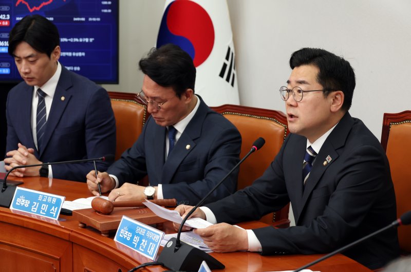 박찬대 당대표 직무대행 겸 원내대표는 이날 오전 국회에서 열린 최고위원회의에서 "내란 동조 세력들의 내란 은폐 연장 시도가 목불인견"이라며 "더욱 강화된 내란 특검법을 재발의하겠다"고 했다.