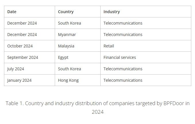 보안 전문회사 트렌드마이크로 보고서에 따르면 BPF도어 수법은 통신, 금융, 리테일 부문을 집중적으로 공격하는 데 쓰이고 있으며 한국, 홍콩, 미얀마, 말레이시아, 이집트에서 공격이 관찰됐다.
