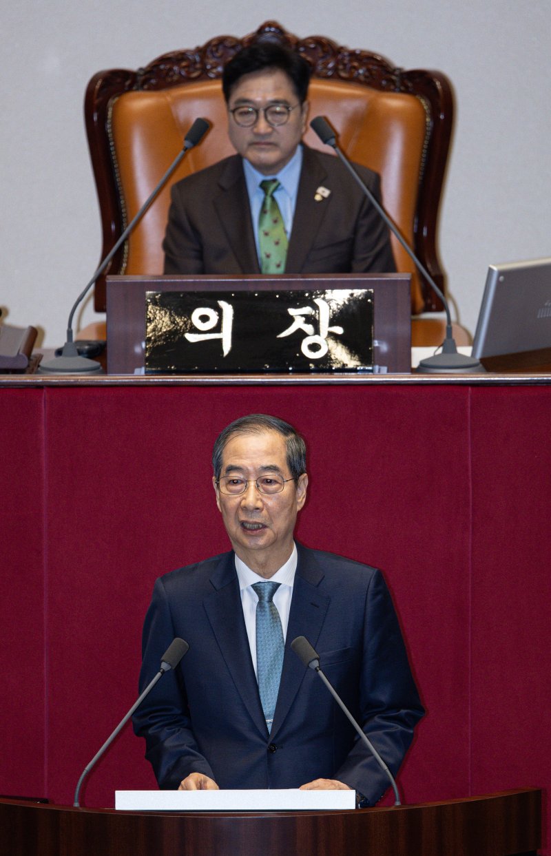 대통령 권한대행의 국회 시정연설은 지난 1979년 11월 최규하 전 대통령이 권한대행으로 있으면서 한 이후 46년 만이다.