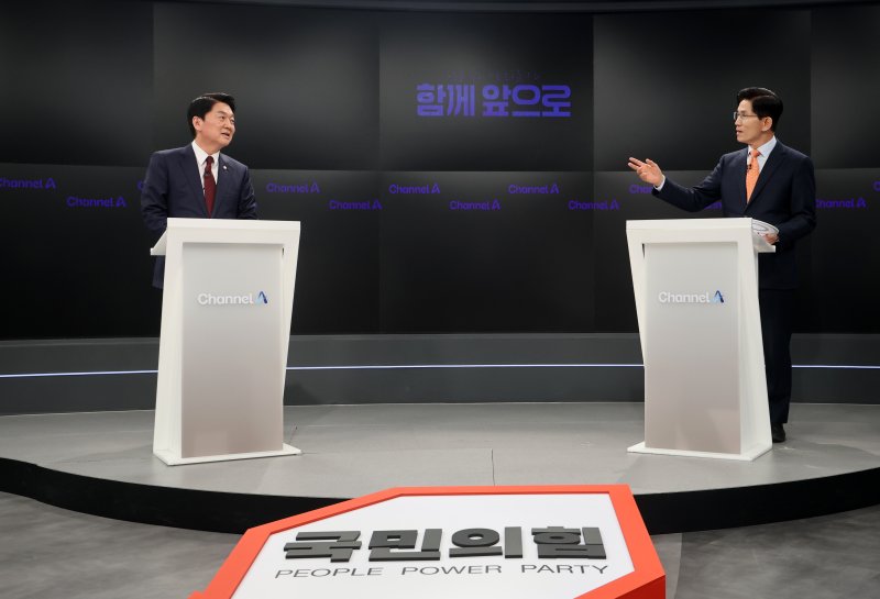 두 후보는 이날 서울 종로구 채널A 스튜디오에서 열린 국민의힘 2차 경선 맞수 토론회 중 '즉문즉답 OX' 시간 및 토론회 뒤 취재진과의 질의응답에서 이처럼 입장을 밝혔다.