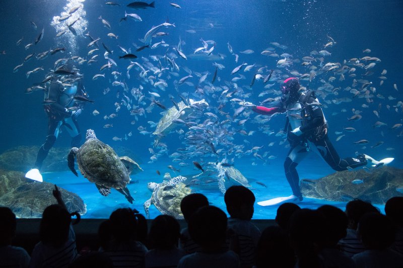 바다거북 수조 앞도 어린이들이 좋아하는 핫플레이스가 됐다. 보노보노 캐릭터가 가득한 이곳엔 다양한 포즈와 귀여운 표정의 보노보노 조형물이 곳곳에 서있어 보고만 있어도 마음까지 덩달아 행복해지는 느낌이다.