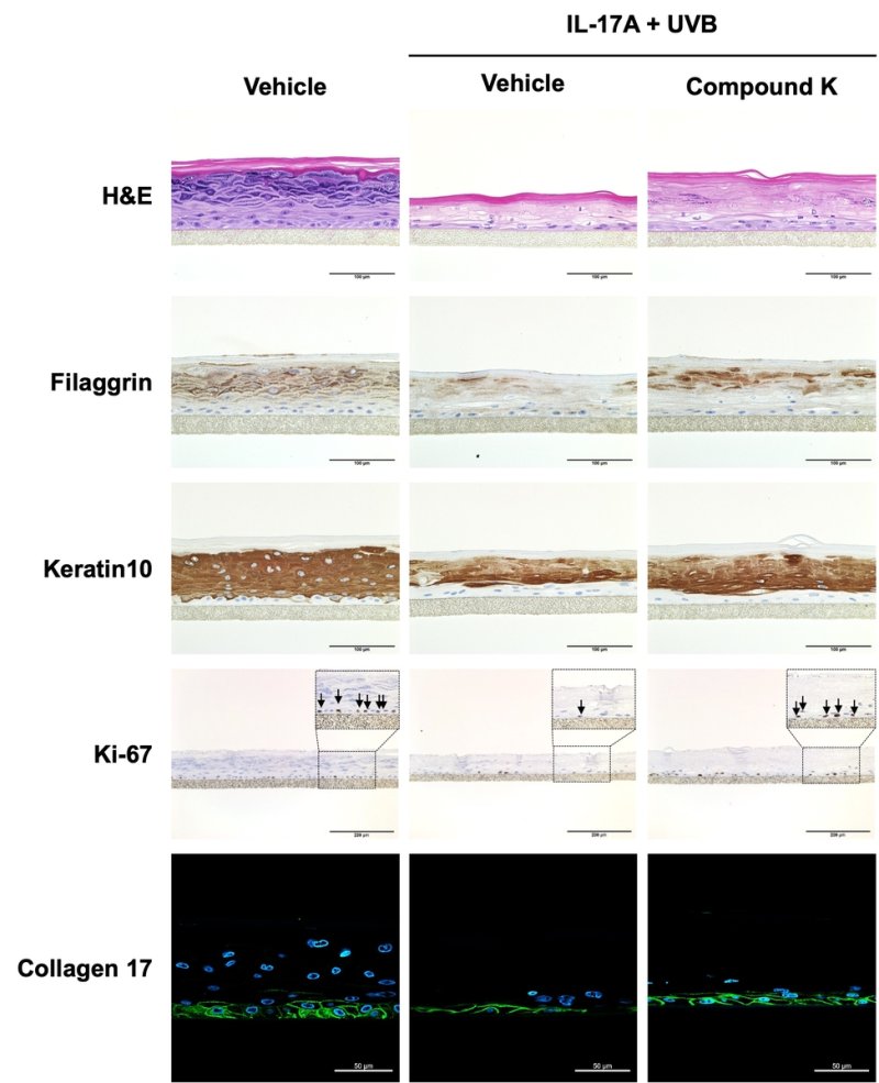 연구 결과 아모레퍼시픽은 IL-17과 UVB의 동시 자극이 염증성 노화 현상을 증폭시키고 피부 표피의 노화를 가속한다는 사실을 확인했다.