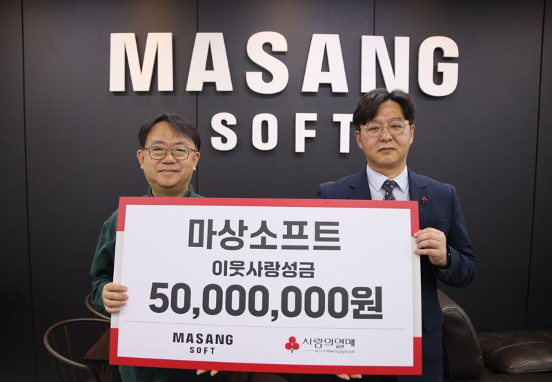 부산사회복지공동모금회는 지난 24일 마상소프트가 이웃돕기 성금 5000만원을 전달했다고 25일 밝혔다.