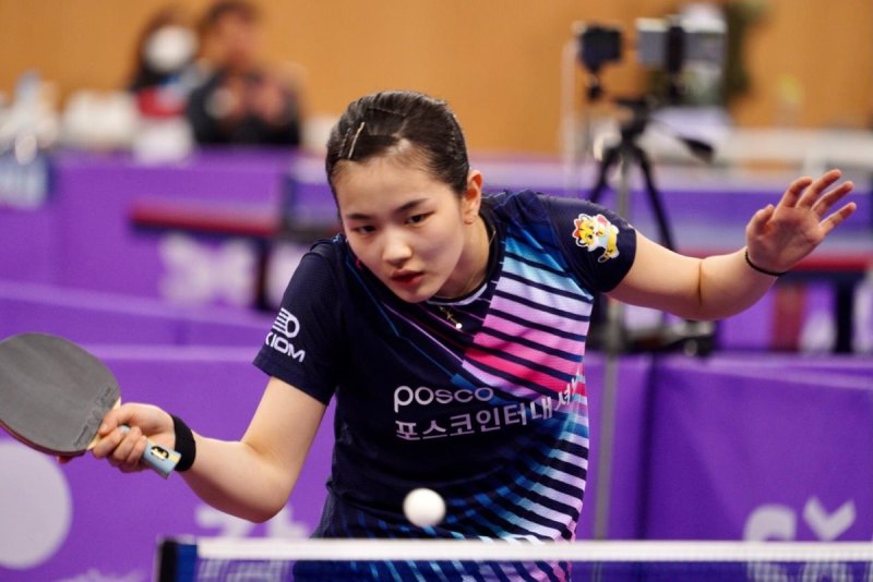 (강릉=연합뉴스) 이동칠 기자 = 여자 실업탁구 강호 포스코인터내셔널이 작년 대회 2관왕인 한국마사회를 제물 삼아 제71회 전국남녀종별선수권대회 결승에 올랐다.