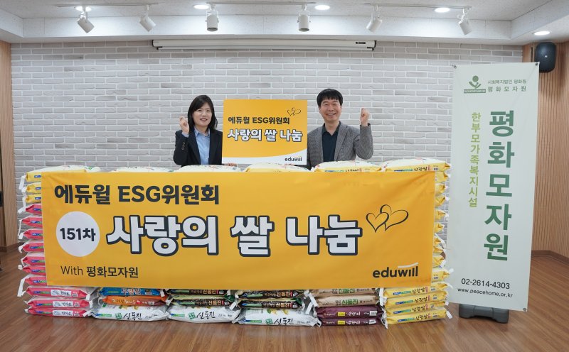 [서울=뉴시스] 권혁진 기자 = 종합교육기업 에듀윌은 구로구 한부모 가족복지시설 ‘평화모자원’에 사랑의 쌀 100포대를 전달했다고 27일 밝혔다.