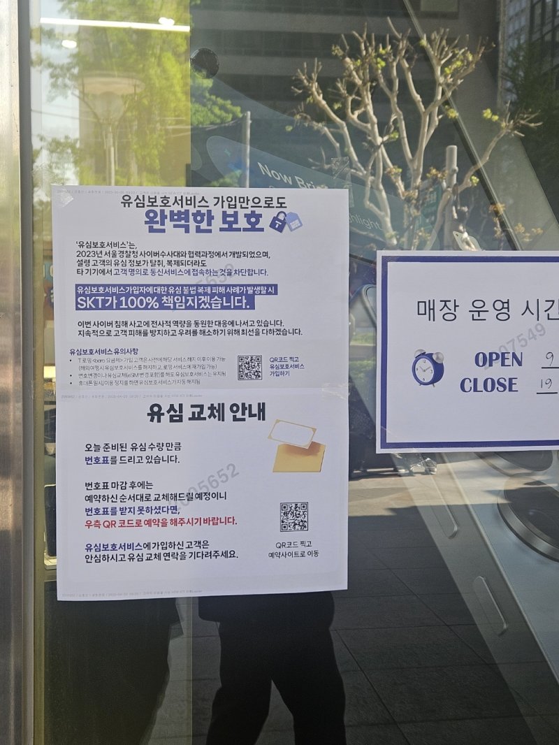 한편 SK텔레콤은 이날 오전 10시부터 전국 T월드 매장과 공항 로밍센터 등에서 유심 무상 교체 서비스에 돌입했다. 그러나 SK텔레콤이 희망하는 이용자 전원의 유심을 교체해 주기까지는 상당한 시간이 소요될 것으로 보인다.